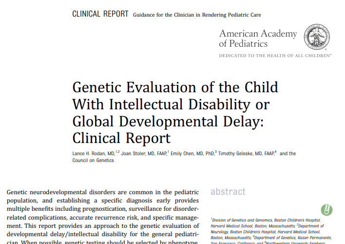 The American Academy of Pediatrics now recommends exome or genome sequencing as a first-tier test for children with global developmental delay or disability.